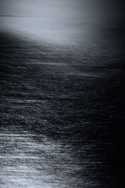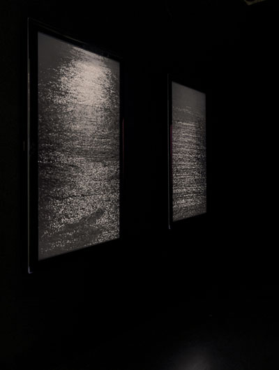 First exhibited at Istanbul Museum of Modern Art, 2013-14. Also included in Moon and Star Drawings (Galeri Mana, Istanbul, 2014). In this series, the passing moon inscribes itself on the sea, its reflection modified by the movement of the water and wind, sometimes also by the movement of the camera. The interplay of these elements is variously recorded, in individual photographs, composites and videos. In the video works, which might perhaps be described as kinetic drawings, a static camera observes the dynamic interaction of moonlight, wind and sea. ______________________ Selected works: ![]() Moon Drawing (with Wind and Water), #3117, 2012 ![]() Moon Drawing (with Wind and Water), #3112, 2012 ![]() Moon Drawing (with Wind and Water), #2974, 2012 ![]() Twelve Moon Drawings (with Wind and Water), 23:06:14 - 23:07:25, 2012 ![]() Moon Drawing (with Wind and Water), #3108, 2012 ![]() Moon Drawing (with Wind and Water), #3165, 2012 ![]() Stills from Moon Drawing (with Wind and Water), #3, 2013 Single-channel video, 16 min ![]() Installation view, Istanbul Museum of Modern Art, 2013 Two single-channel videos (Moon Drawings #2 & 3), each 16 min Photographs copyright © Barbara & Zafer Baran www.zb-baran.co.uk |